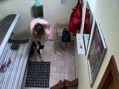 Busty Chubby Girl Relaxing in Solarium Tanning Bed