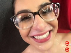 Nerdy Amateur Babe Receives a Huge Load of Cum on Face