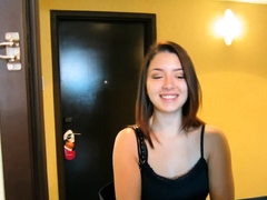 Tasty teen brunette floozy Chinita conquers a huge pecker