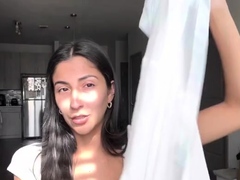 Petite Latina maid exposes her big boobs